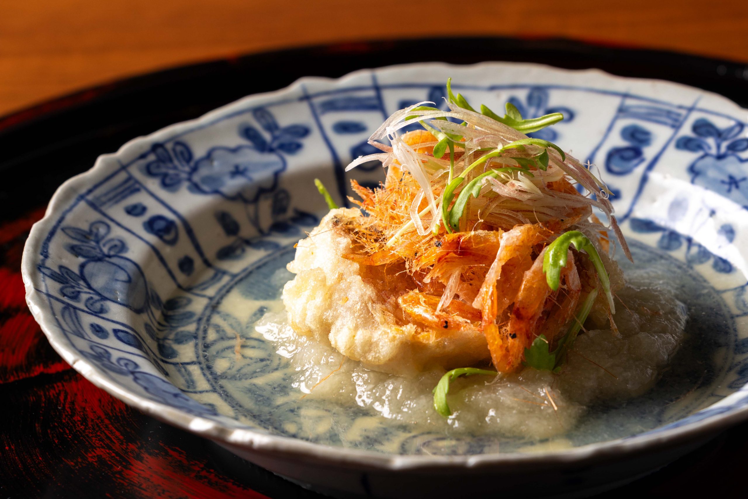 As spring unfolds, Kozue offers dishes shaped by peakseason ingredients—Kyoto bamboo shoots and wild yellowtail in March, followed by sakura shrimp and tilefish in April.